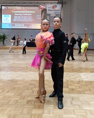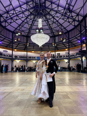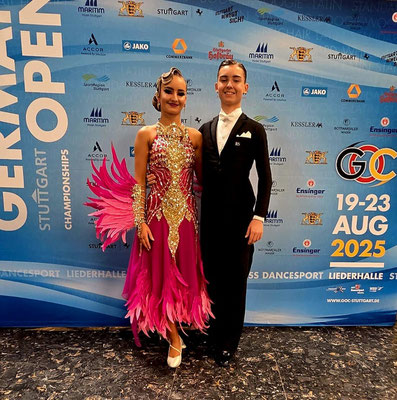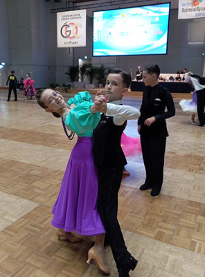 Polina & Arseniy hatten bei der Turnierauswahl ein bisschen Pech, waren sie doch sowohl am ersten, als auch am letzten Tag am Start. Im WDSF Open Ten Dance Junior I zeigten sie sich von der Vorrunde an bestens aufgelegt und tanzten in der Königsdisziplin über 10 Tänze bis ins Semifinale und auf Platz 9 (32). Vielleicht wäre sogar das 7-paarige Finale drin gewesen - aber es ist gar nicht so leicht, bereits um 09:30 Uhr ins Turnier zu starten und das Semifinale erst abends um 19:00 Uhr zu tanzen. Beim WDSF Open Standard Junior I tanzten sie am letzten Turniertag bis in die Runde der besten 24 auf Platz 16-17 (41).