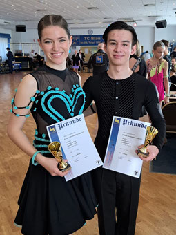 Mit dem Sieg in der JUG C Standard konnten sie den AUFSTIEG in die B-Klasse perfekt machen. Dem ersten Start in der neuen Startklasse stand dann aber der Zeitplan vor Ort im Weg - da werden die Beiden sich dann wohl bis zum nächsten Turnierwochenende gedulden müssen.
